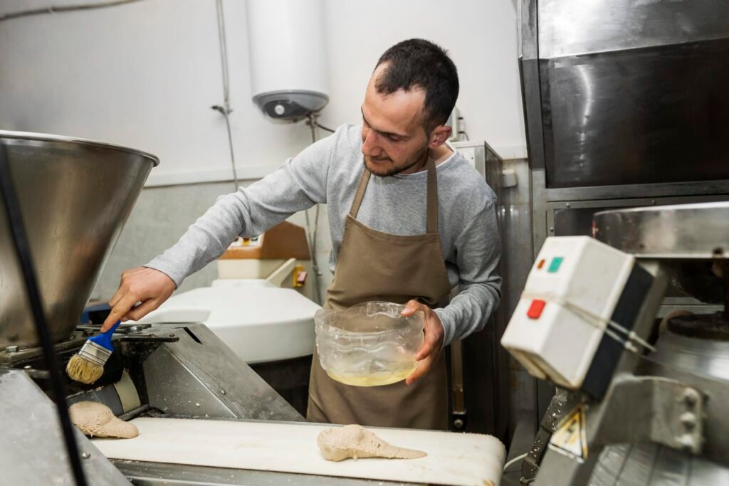 visuel montrant une personne réalisant des travaux pour création boulangerie, reprise boulangerie et vente boulangerie